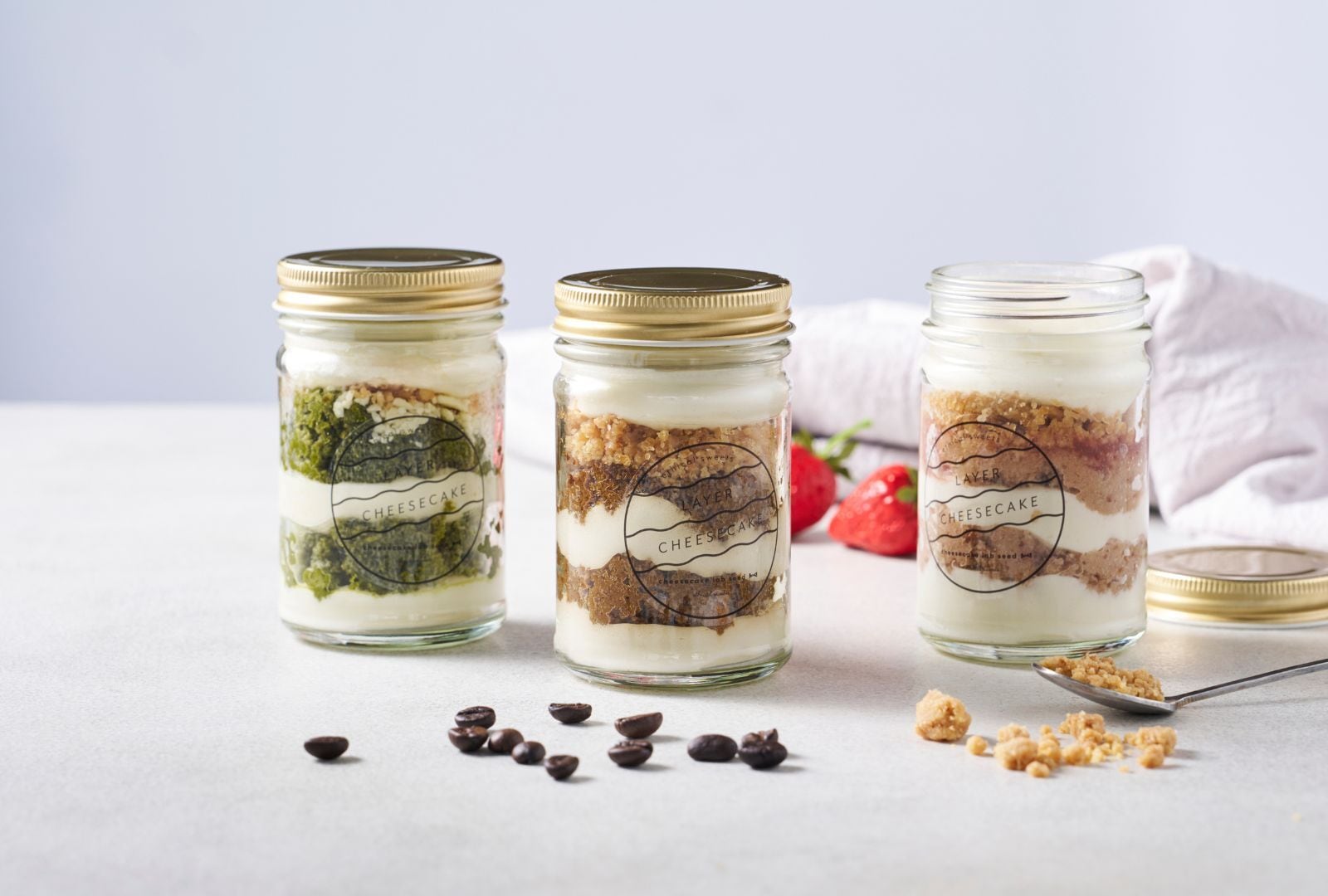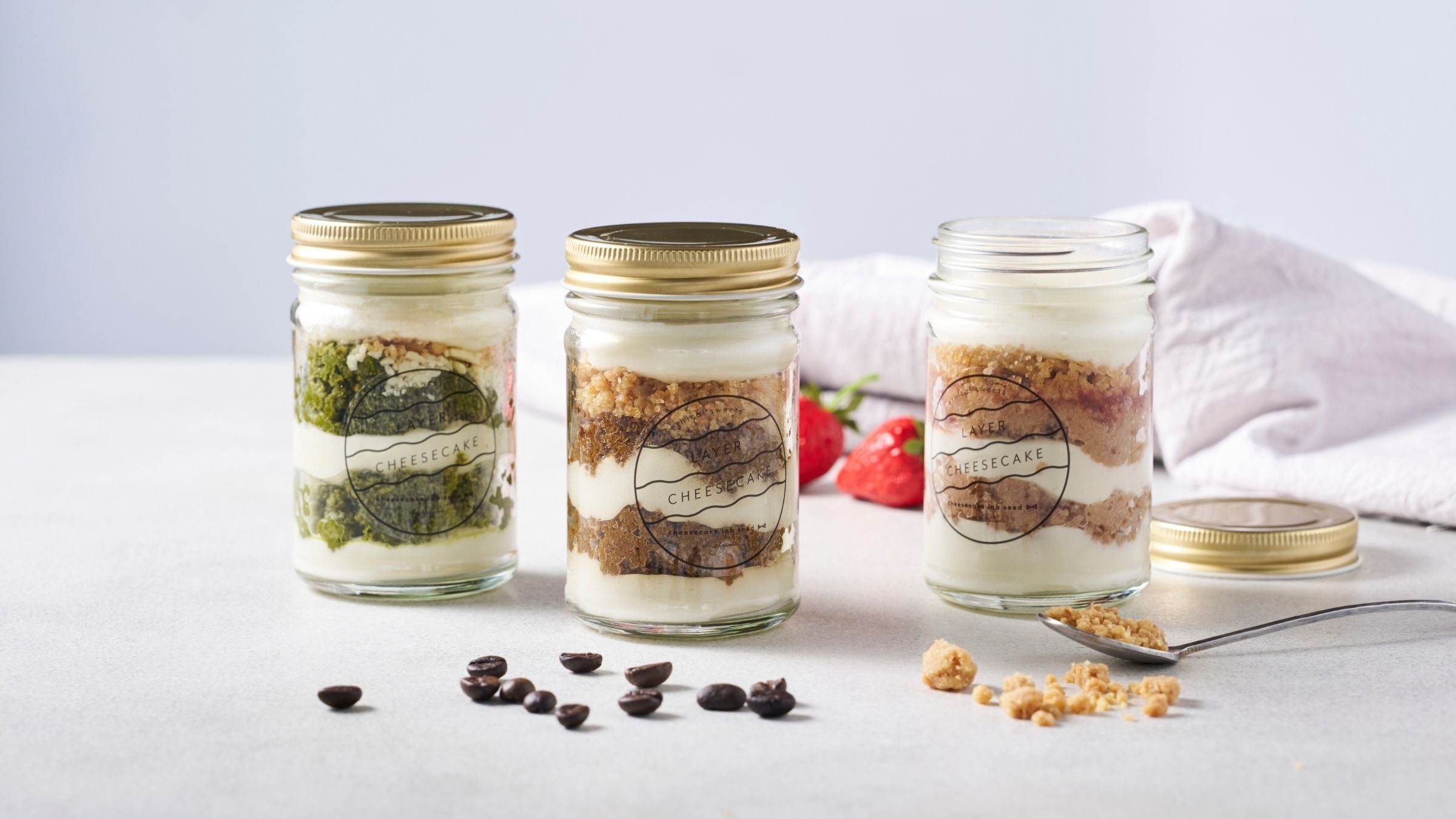 『一口ごとに広がる幸せ』 seedの瓶入りチーズケーキ こだわりの素材を何層にも重ね、食べていく度にしあわせを感じてもらいたい そんな思いを込めて開発しました