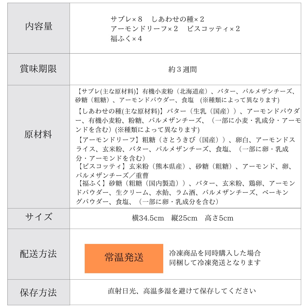 エシカルコレクション【L】は、国産有機小麦、農薬不使用・化学肥料不使用の玄米粉、鹿児島県産粗糖、国産チーズ、こだわりの厳選卵を使用した焼菓子ギフトです。
