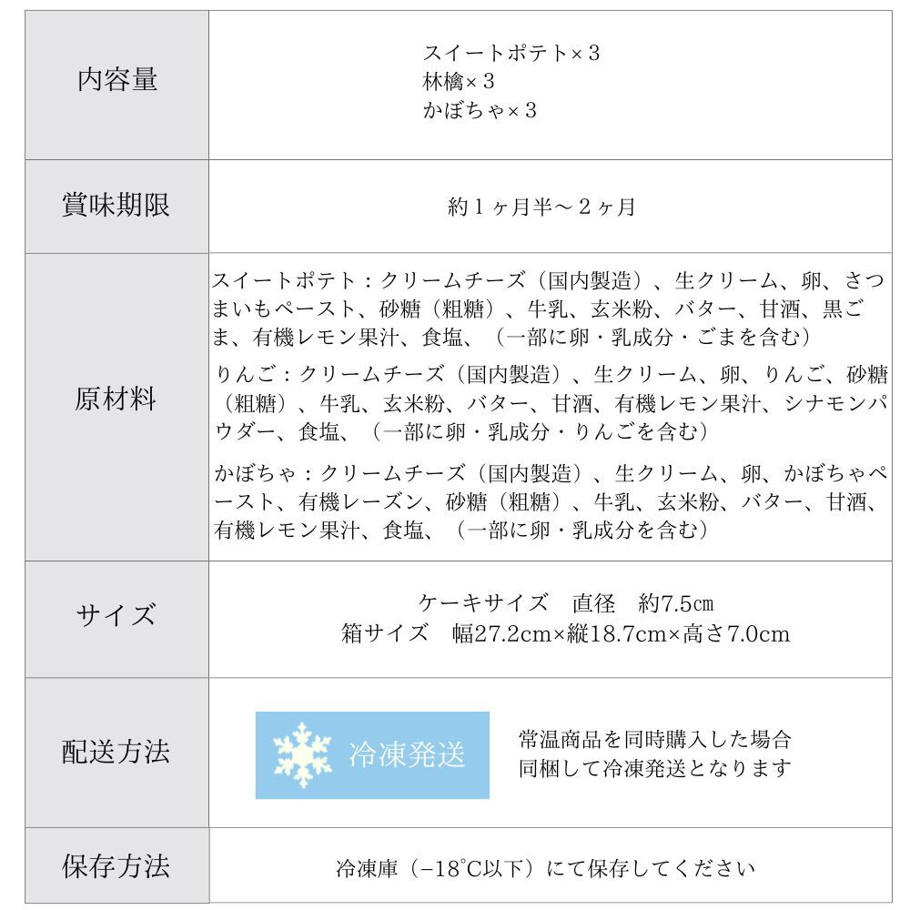 【季節限定】地球に優しいチーズケーキ9個セット スイートポテト・林檎・かぼちゃ