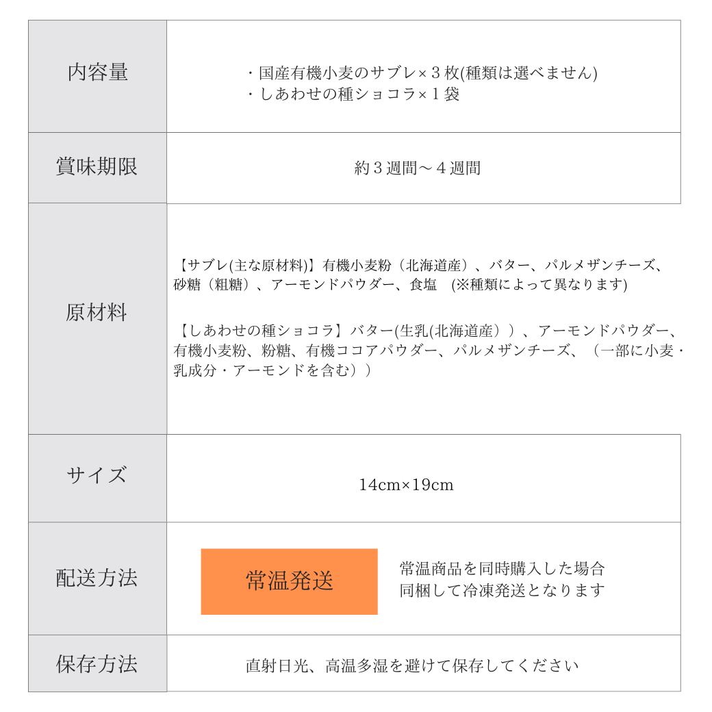 しあわせの種のショコラが入っています