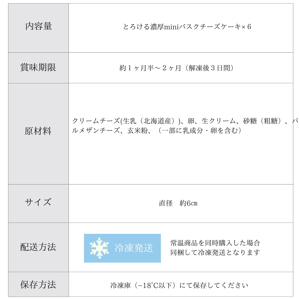 とろける濃厚miniバスクチーズケーキ6個ギフト